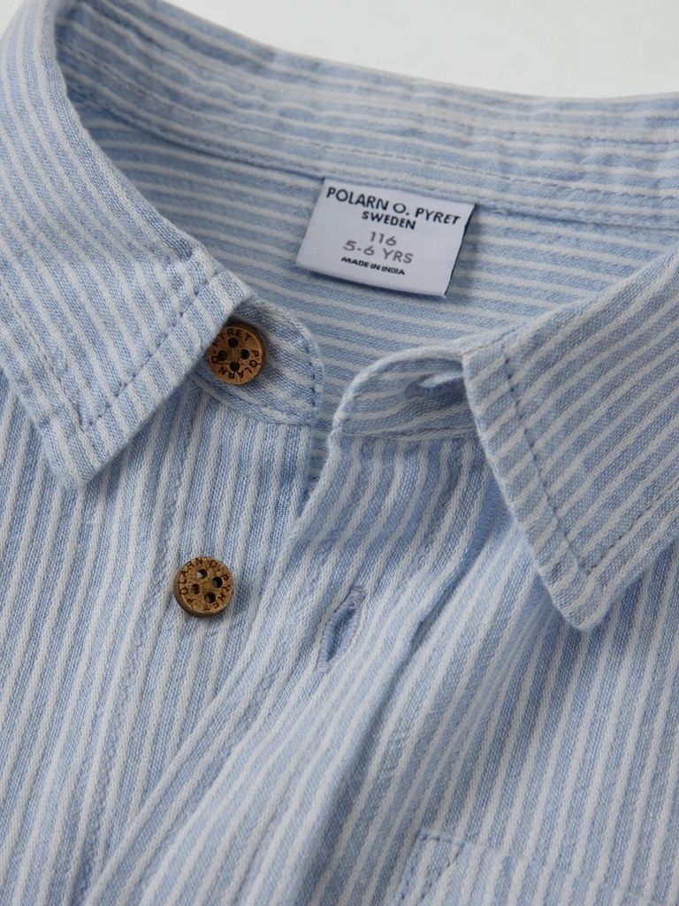 Ein zeitloser Klassiker in neuer, sommerlich leichter Variante: Dieses gestreifte Hemd von Polarn O. Pyret besteht aus gewebter Bio-Baumwolle und überzeugt mit einer luftigen, angenehm leichten Qualität. Perfekt für Alltag, Feste oder besondere Momente mit einem stilvollen, aber entspannten Look.