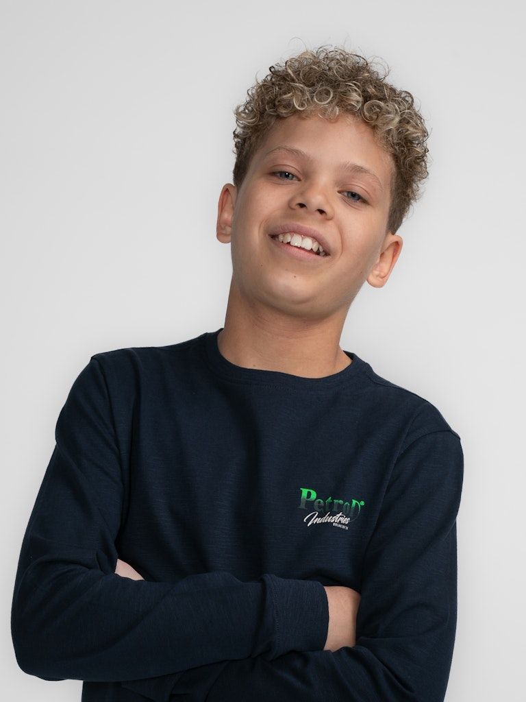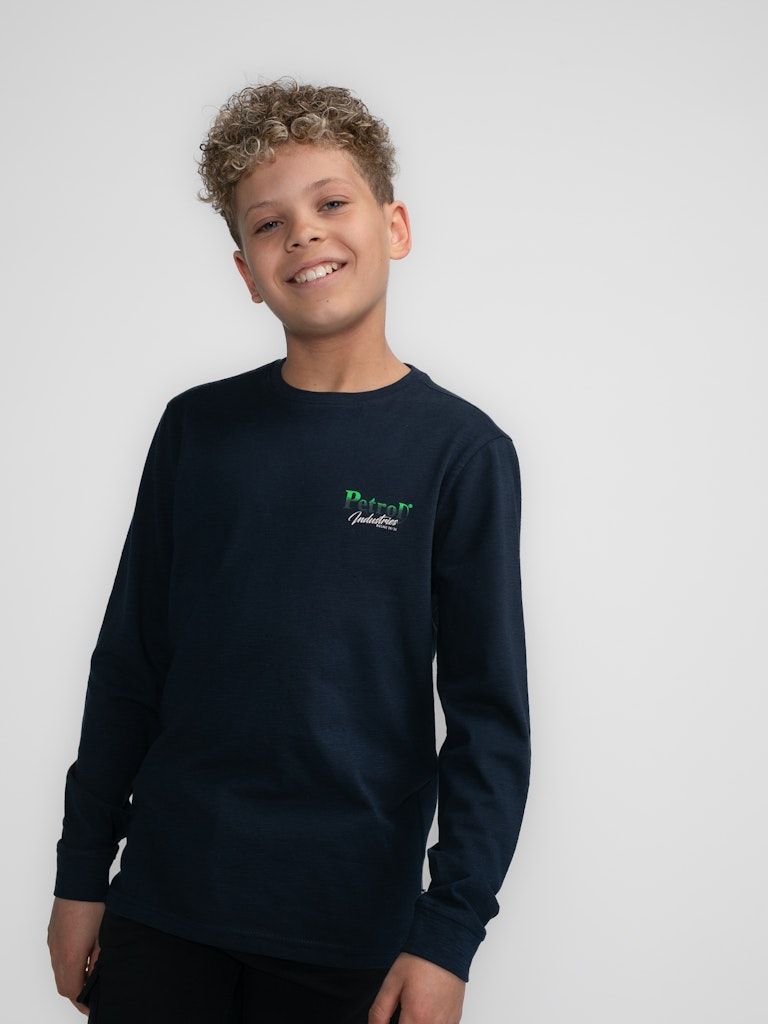 Grafisches T-Shirt mit Rundhalsausschnitt und langen Ärmeln. Dieses T-Shirt zeigt eine Logo-Grafik auf Rücken und Brust. Hergestellt aus 100 % Baumwolle.