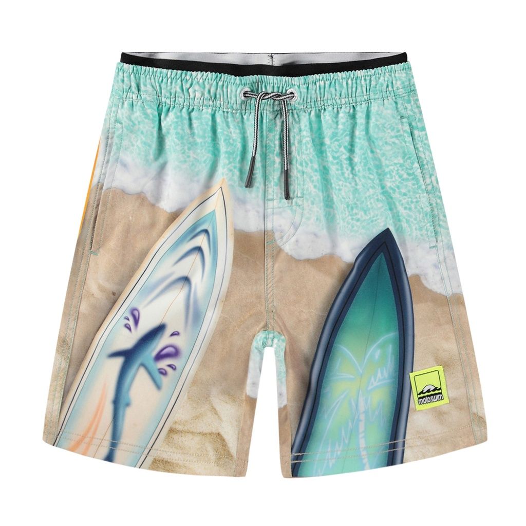Polyester mit UV-Schutz 50+. Die Shorts haben eine lockere Passform,