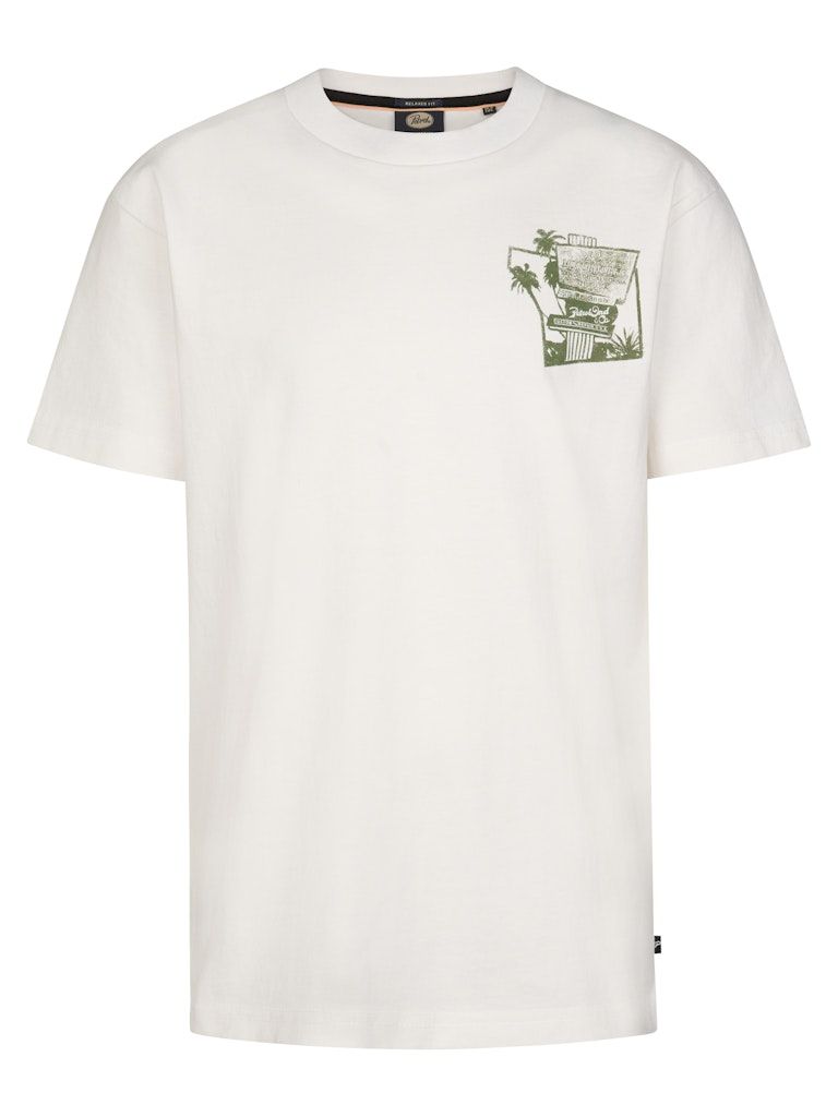 Der klassische Rundhalsausschnitt, kurze Ärmel und der gerade Saum unterstreichen den lässigen Look. Ein Print auf der Brust und auf dem Rücken setzt moderne Akzente und verleiht dem Shirt einen coolen Style. Das kleine gewebte Etikett in der Seitennaht rundet das Design dezent ab.