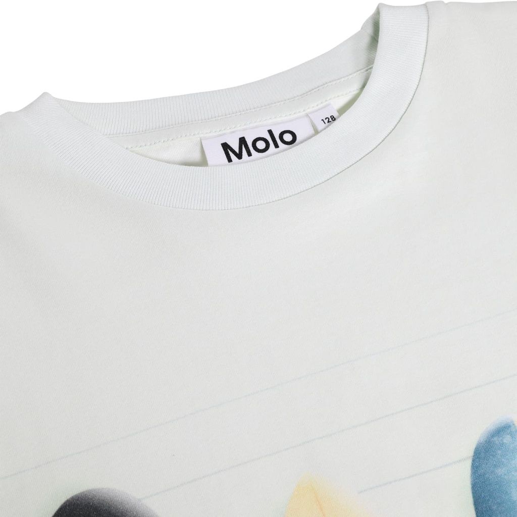 Bunt, bequem und nachhaltig: Dieses weisse T-Shirt von Molo aus 100 % Bio-Baumwolle ist perfekt für einen entspannten Alltagslook. Der gerippte Halsausschnitt und die lockere Passform sorgen für hohen Tragekomfort, während der fröhliche Surfbretter-Print dem Outfit einen sommerlichen, verspielten Touch verleiht.