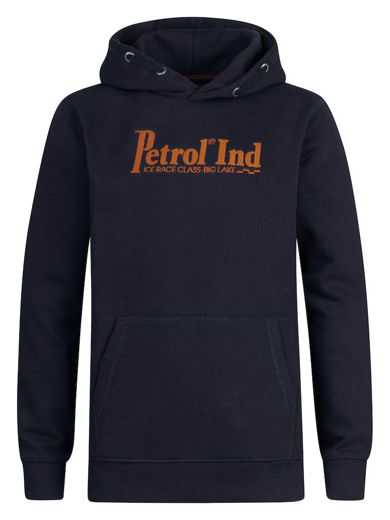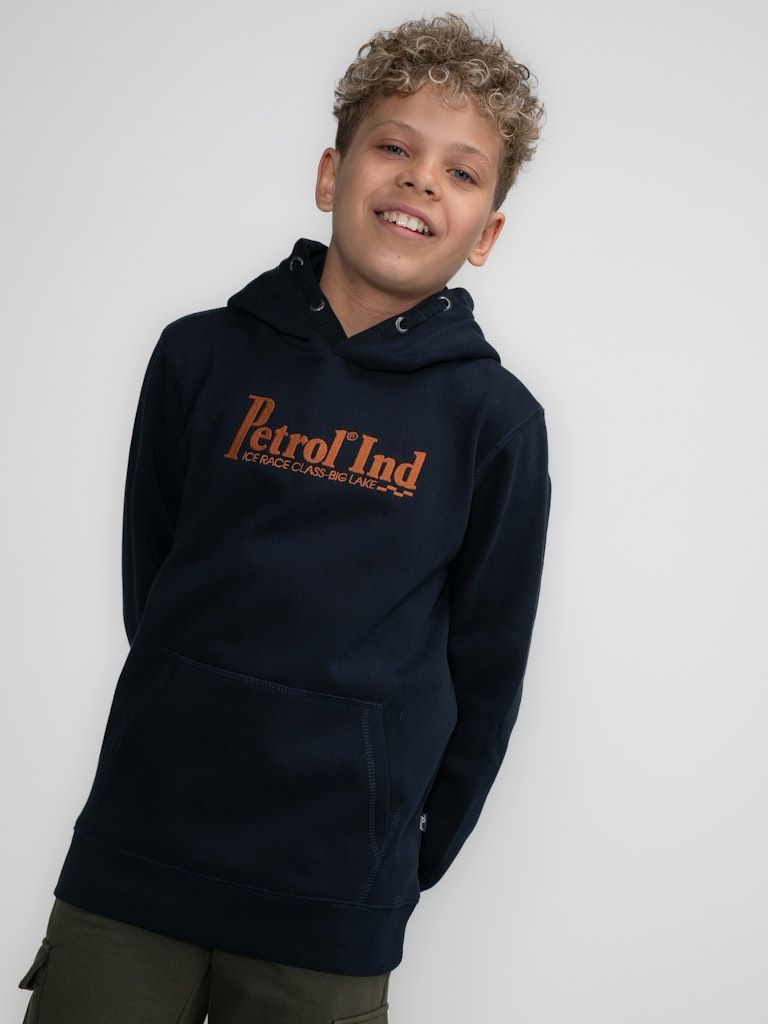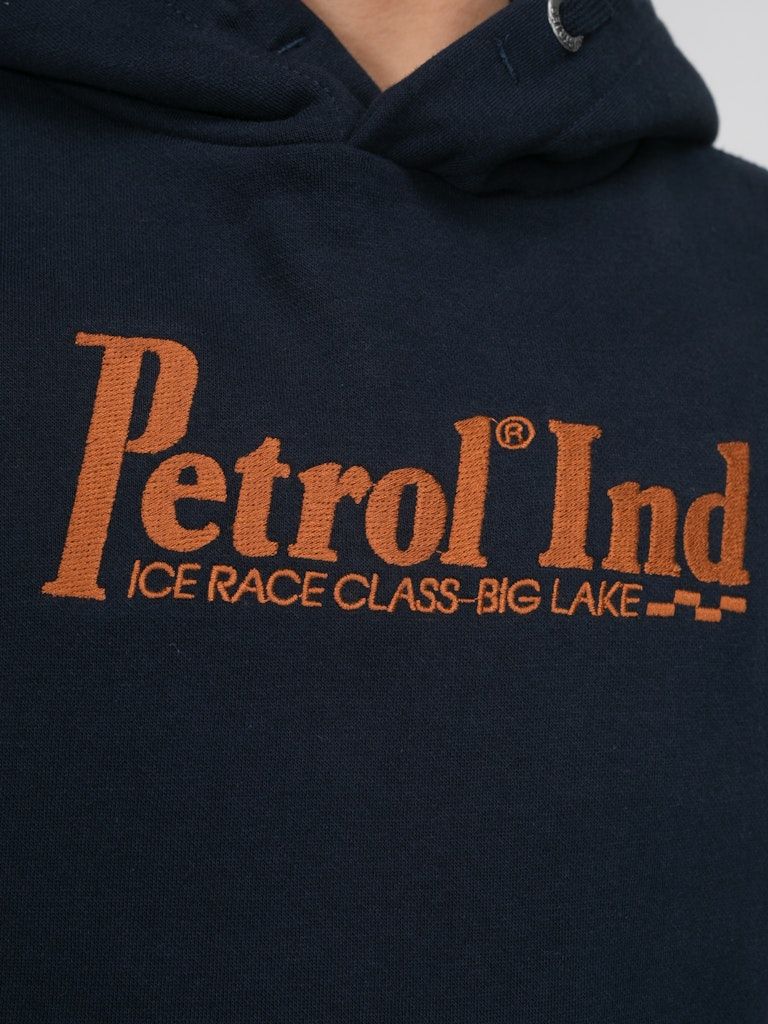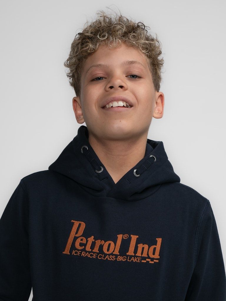 Bequemer Hoodie mit im Brustbereich appliziertem Petrol-Aufdruck. Dieser Hoodie hat eine Kapuze mit Tunnelzug, eine Kängurutasche und gerippte Ärmelbündchen.