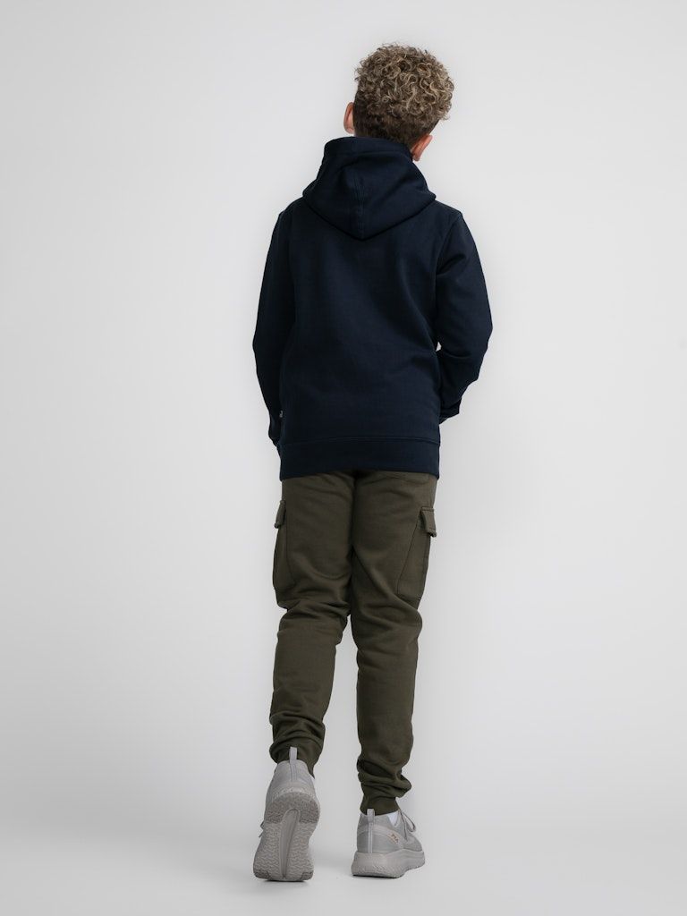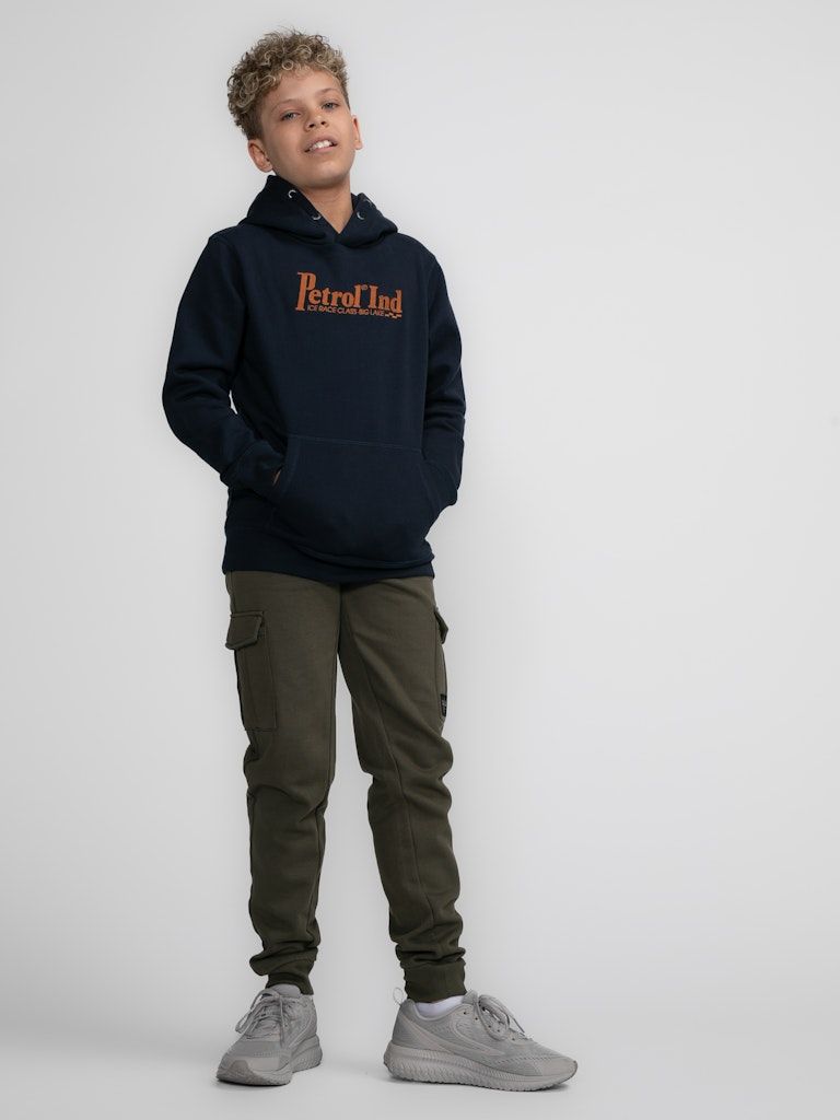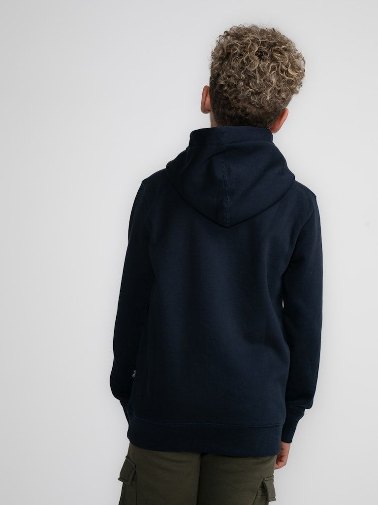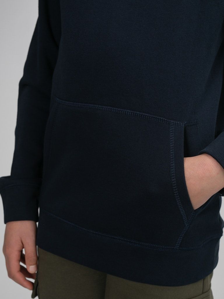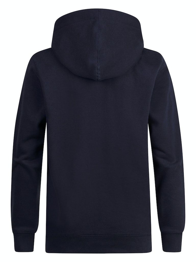 Bequemer Hoodie mit im Brustbereich appliziertem Petrol-Aufdruck. Dieser Hoodie hat eine Kapuze mit Tunnelzug, eine Kängurutasche und gerippte Ärmelbündchen.