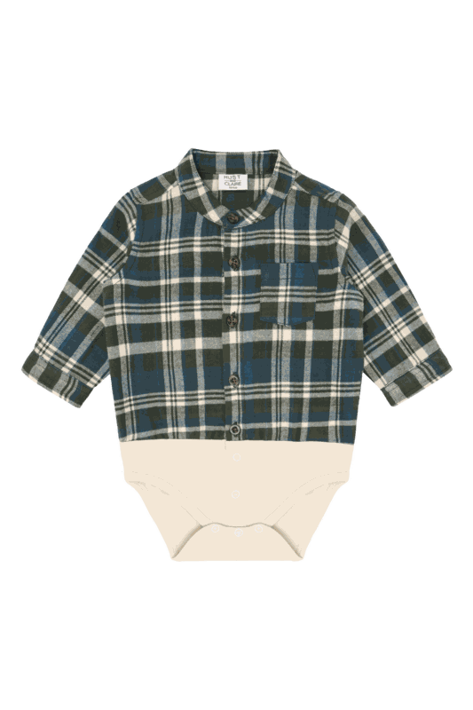 Der Hust & Claire Hemdbody verbindet klassischen Stil mit kindgerechtem Komfort. Das schöne Karomuster im oberen Bereich trifft auf den beigen Baumwolljersey im unteren Bereich - ein harmonisches Design für jeden Anlass.