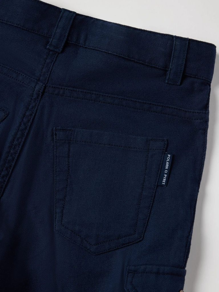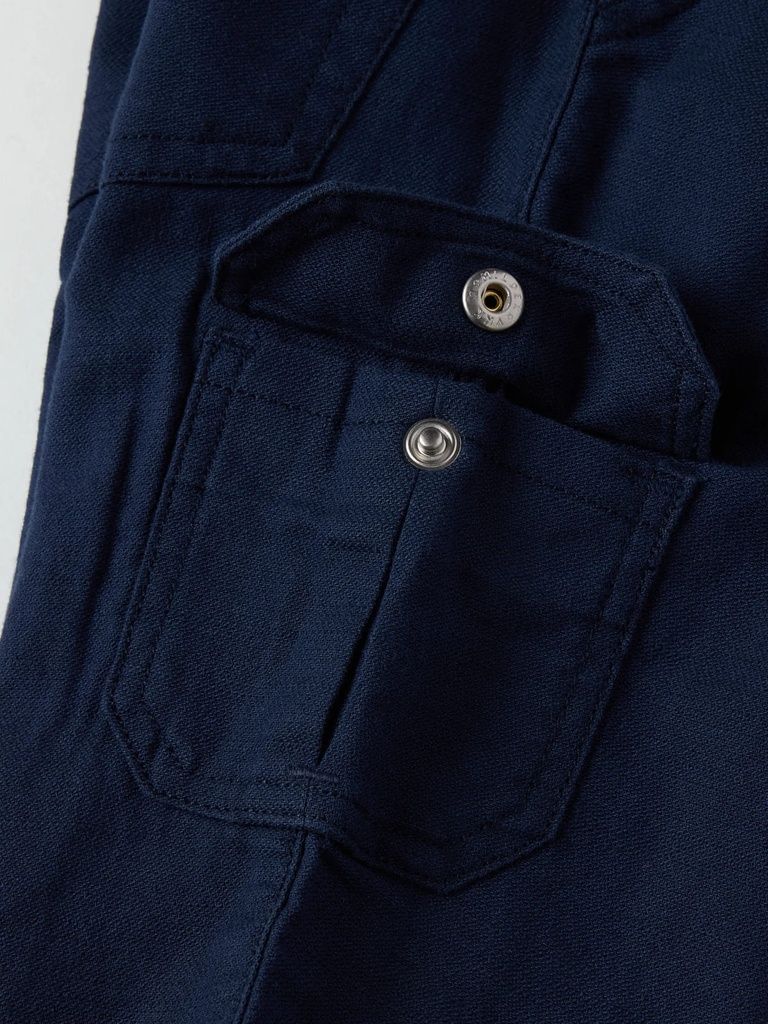 Die Shorts besitzt vorgeformte Knie für extra Bewegungsfreiheit, umschlagbare Beinabschlüsse sowie zahlreiche Taschen – darunter zwei große Beintaschen mit sicherem Druckknopfverschluss. Für die Kleinsten (Grösse 86–92) sorgt ein weiches Rippenbündchen an der Taille für noch mehr Komfort.