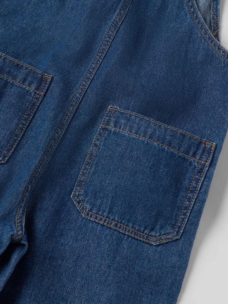 Die Latzhose aus weichem, leichtem Denim ist ein stylischer und praktischer Begleiter für Ihr Kind. Sie überzeugt mit geraden Beinen, verstellbaren Trägern mit Schnallen und seitlichen Knöpfen, die das An- und Ausziehen erleichtern. Die Brusttasche vorne und zwei Gesässtaschen bieten Platz für kleine Schätze, während Druckknöpfe im Schritt für bequemes An- und Ausziehen sorgen.