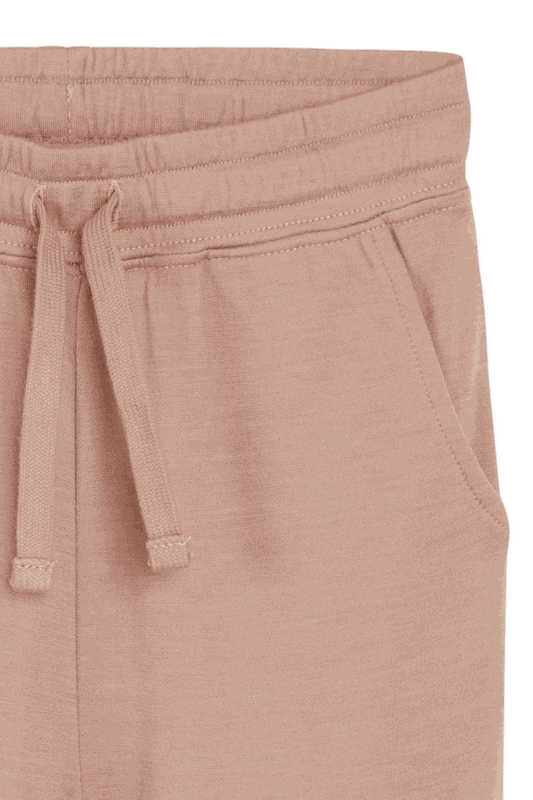 Jogginghose aus weicher, dehnbarer Wolle und Bambusviskose, die mit Seitentaschen ausgestattet ist. Dieses Modell verfügt über einen Elastikbund und ein Schnürband in der Taille.