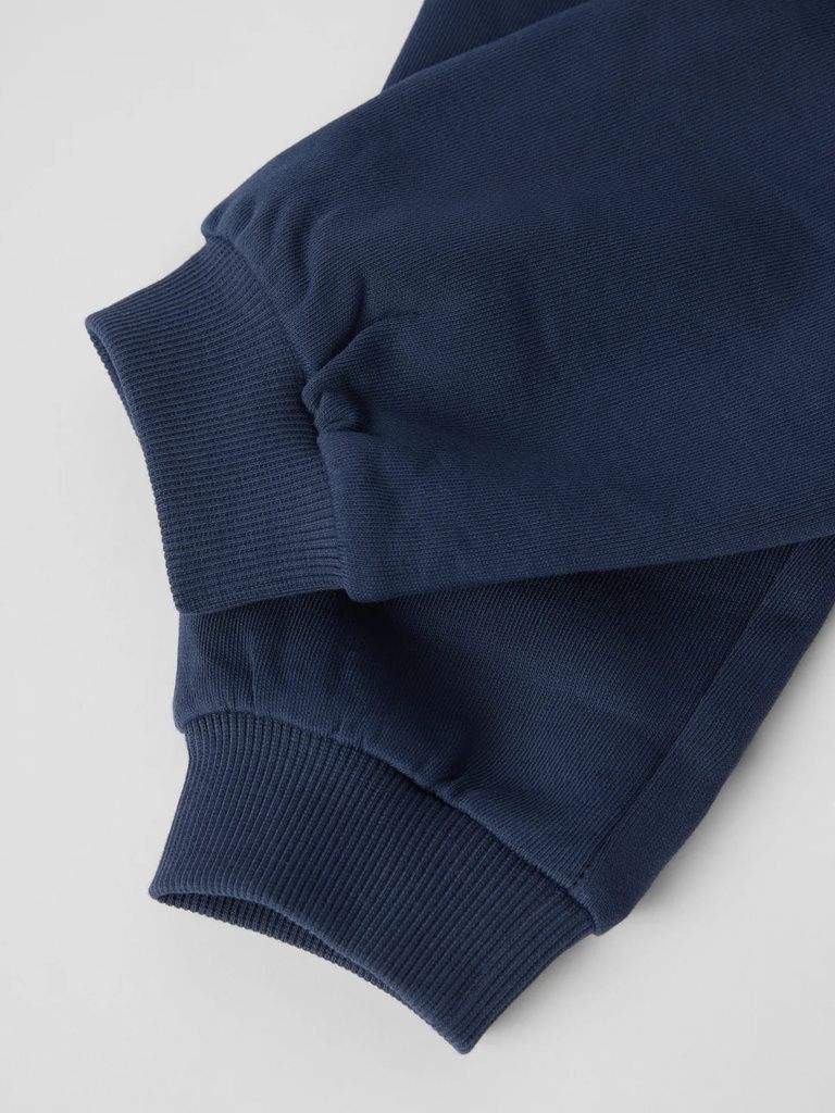 Der elastische Bund mit kontrastfarbener Kordel sorgt für einen verstellbaren Sitz, während die weichen Rippbündchen an Taille und Beinabschlüssen die Hose bequem an Ort und Stelle halten. Ein nachhaltiges Basic, das mit Komfort und Langlebigkeit überzeugt.