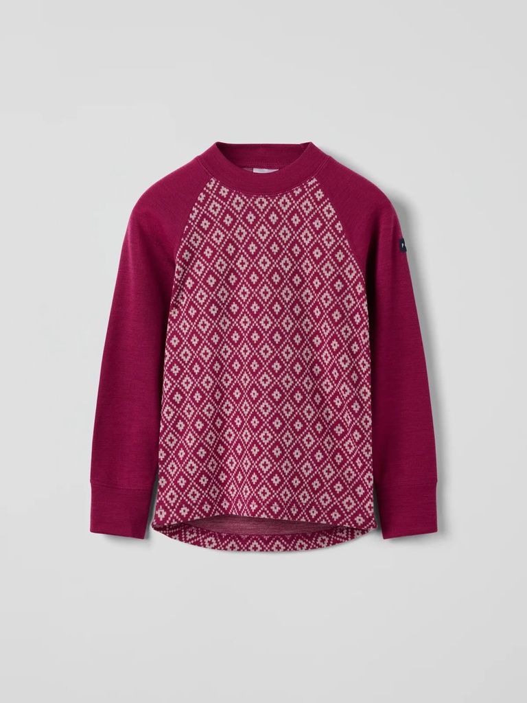 Perfekt als erste Schicht unter der Oberbekleidung: Der Polarn O. Pyret Pullover aus Jacquard-Merinowolle hält Kinder auch bei feuchtem Wetter angenehm warm. Die Merinowolle reguliert die Körpertemperatur, ist atmungsaktiv und besonders weich auf der Haut - ideal für empfindliche Kinderhaut.