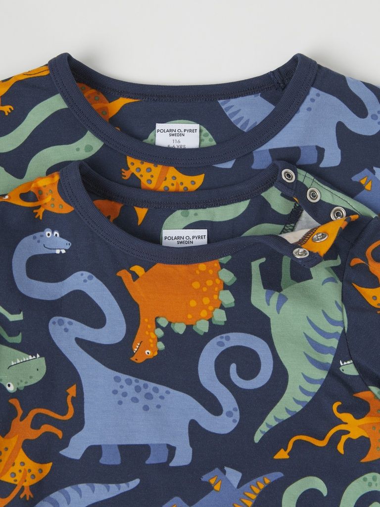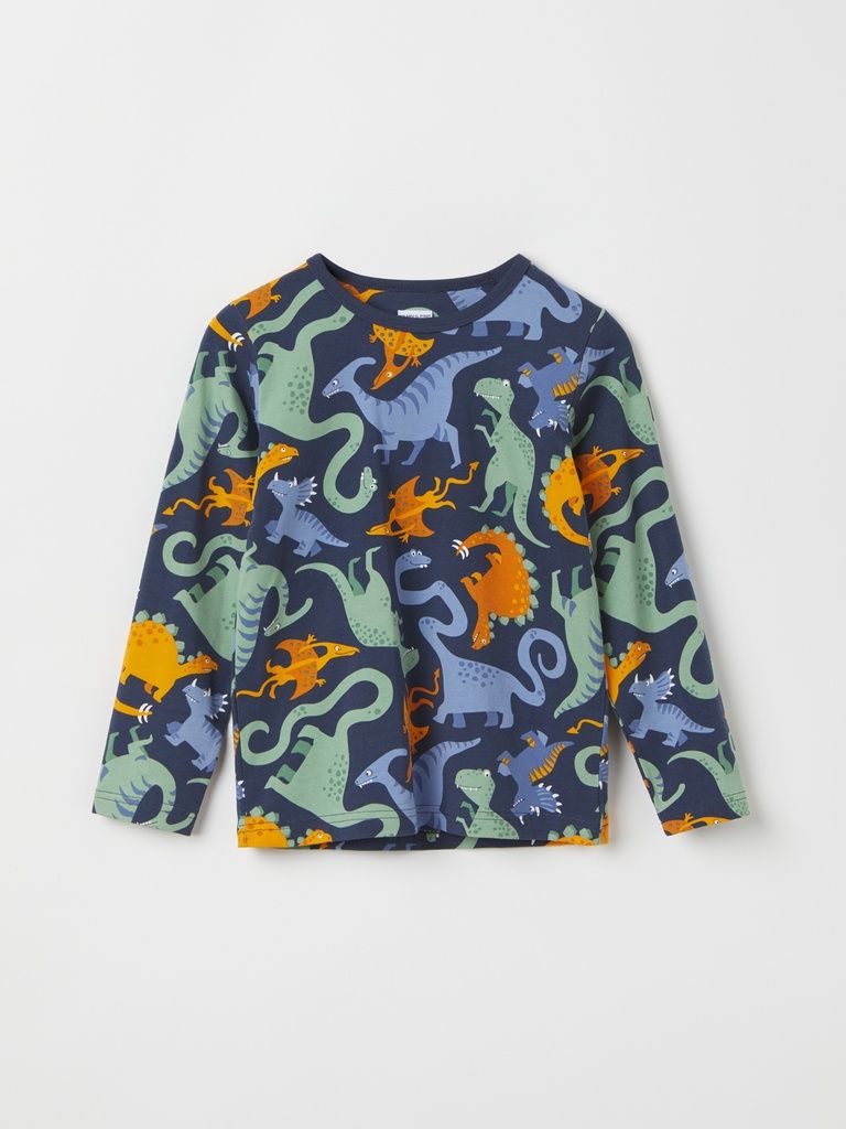 Das bequeme Shirt aus weichem Bio-Baumwolltrikot ist durchgehend mit Dinosauriern bedruckt. Es passt zu jedem Anlass!