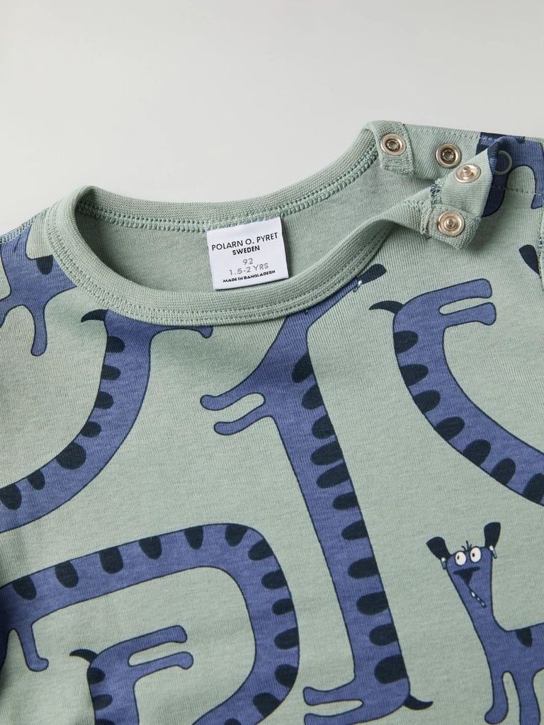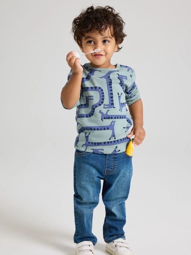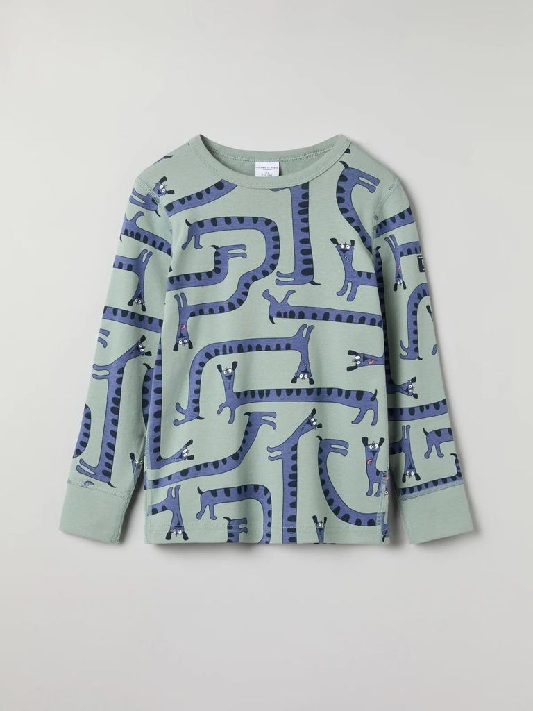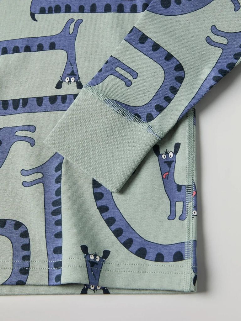 Das Shirt aus 100% Bio-Baumwolle ist durchgehend mit lustigen Hunden bedruckt. Ein Teil, das lange geliebt werden kann!