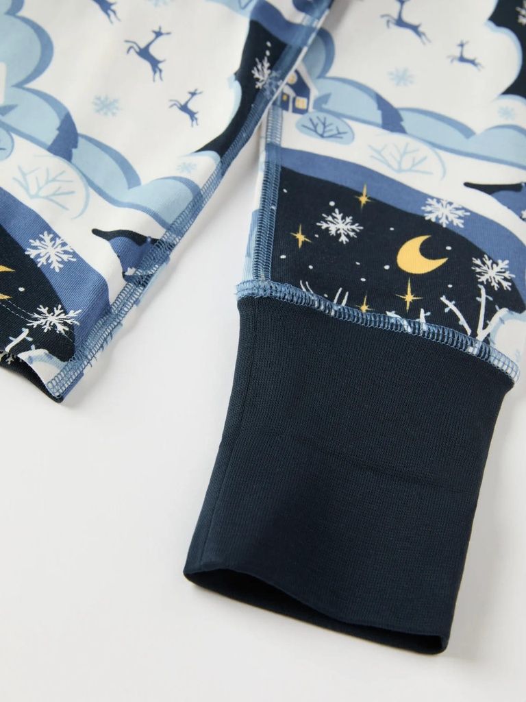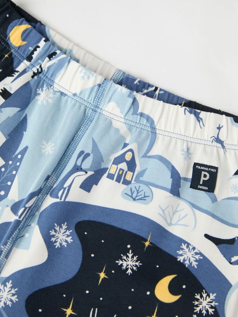 Zweiteiliger Schlafanzug aus weicher Bio-Baumwolle mit winterlichem Motiv. Das Oberteil hat extra lange Ärmelbündchen zum Umschlagen. Die Hose mit elastischem Bund hat extra lange Bündchen an den Beinabschlüssen.