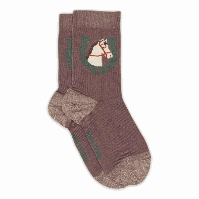 Melton Baumwollsocken - Pferde-Motiv mit Glitzer für Kinder