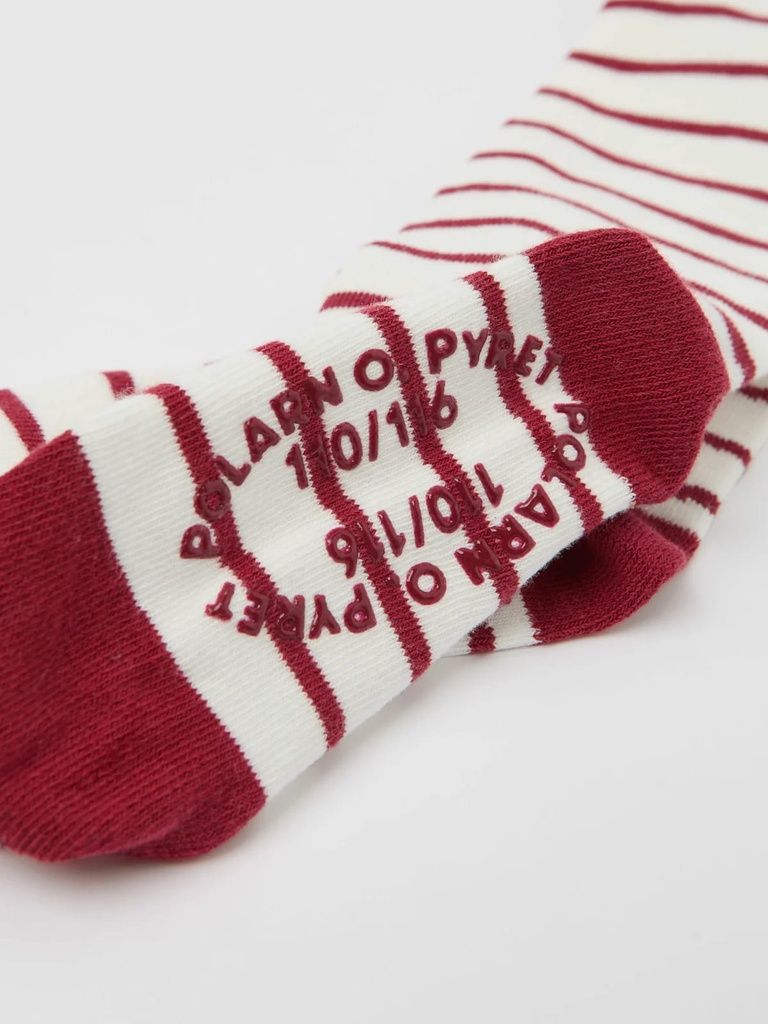 Strickstrumpfhose aus weicher Bio-Baumwolle. Die Strumpfhose hat unsere klassischen Streifen und rote Herzen an den Knien.
