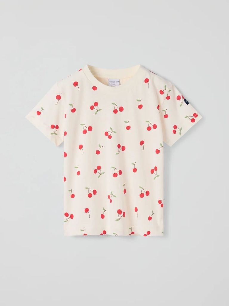 Das perfekte Basic-Teil: Dieses weiche T-Shirt aus 100 % Bio-Baumwolle ist ideal für jeden Anlass. Das verspielte Kirschen-Motiv sorgt für fröhlichen Style, während die vielfältigen Farben und Muster sich wunderbar mit der gesamten Kollektion kombinieren lassen.