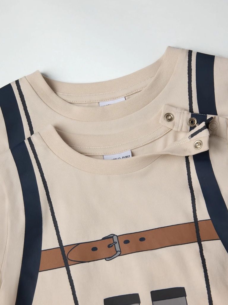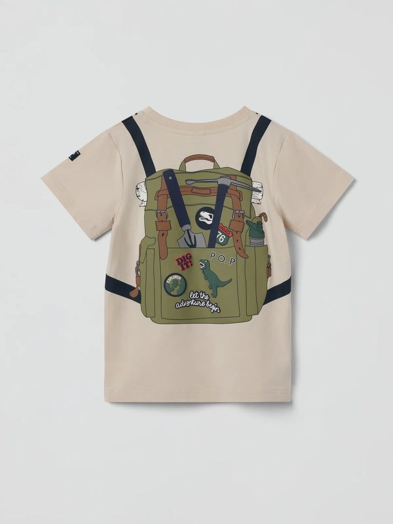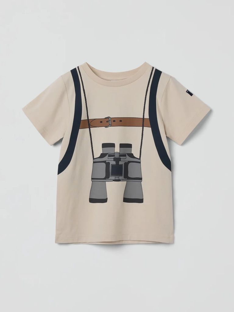 Bereit für das nächste Abenteuer? Dieses T-Shirt aus 100 % Bio-Baumwolle begeistert mit einem verspielten Fernglas- und Rucksack-Print auf Brust und Rücken – perfekt für kleine Entdecker!