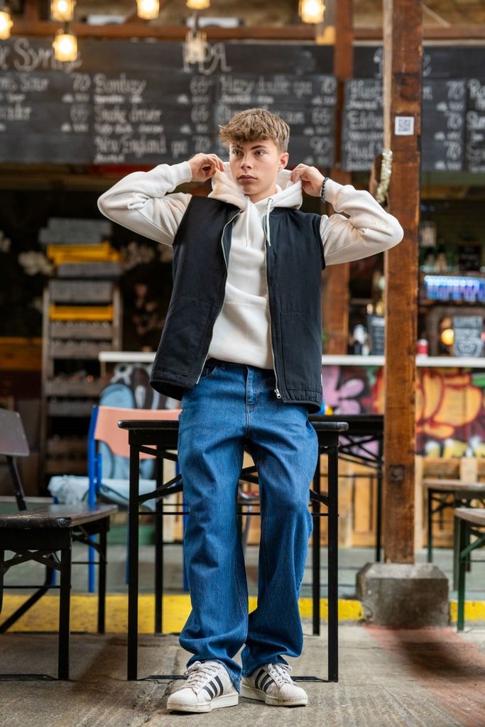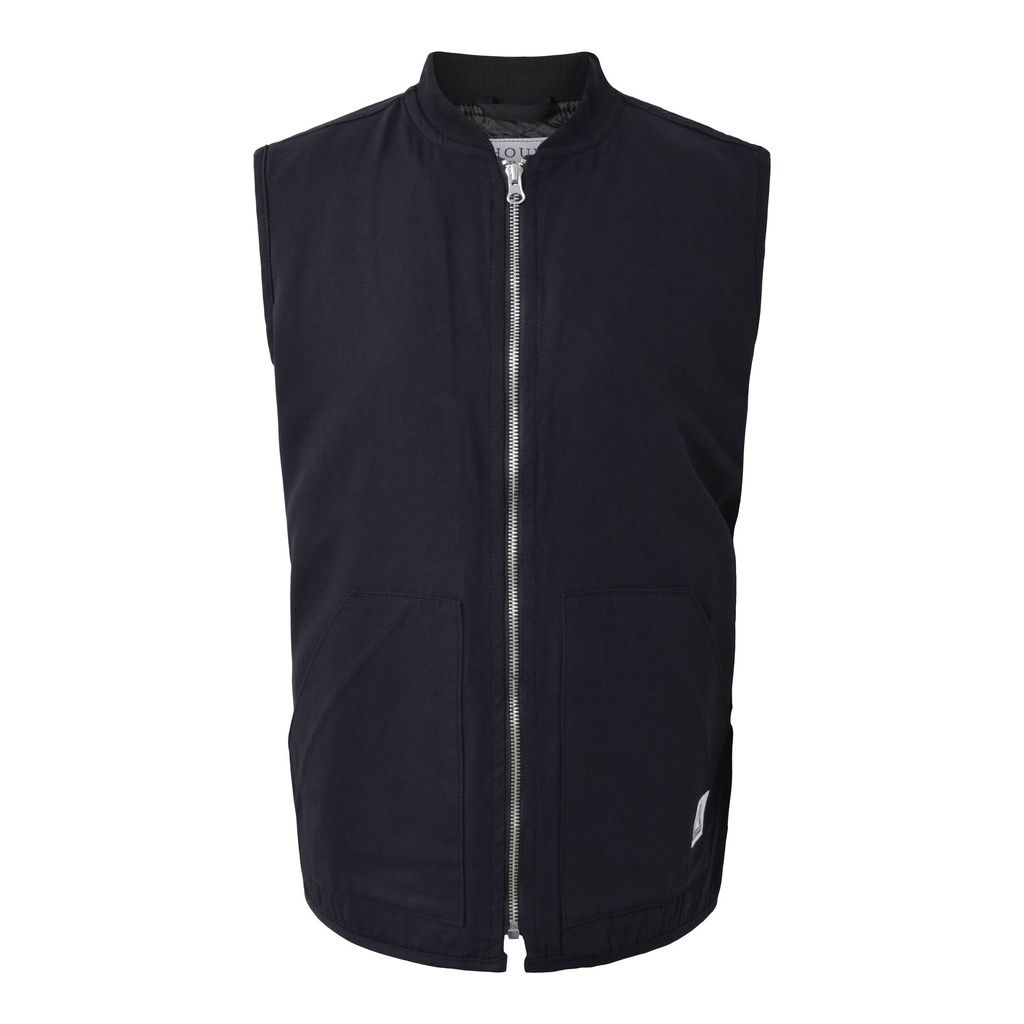 Leichte, gesteppte, ärmellose Weste mit geripptem Bomberkragen und Frontreissverschluss. Die Weste hat Fronttaschen, ein gewebtes Etikett auf der Tasche und eine wasserabweisende Imprägnierung.