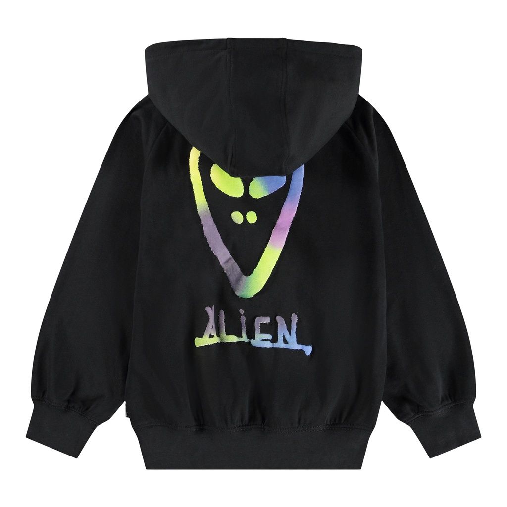 Molo Hoodie für Kinder - Schwarz mit Alien-Print, Bio-Baumwolle
