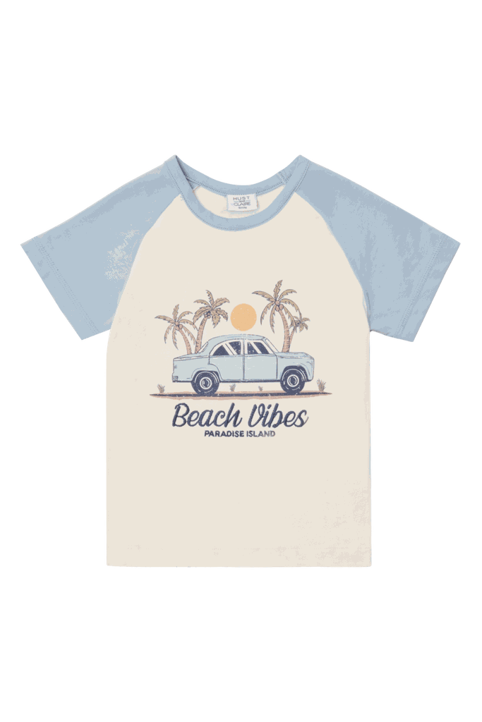 Dieses kurzärmelige T-Shirt aus weicher, dehnbarer Baumwolle ist der perfekte Begleiter für sonnige Tage! Mit seinem Strand-Print auf der Vorderseite weckt es sofort Urlaubsfeeling und sorgt für einen lässigen Look. Der weiche Stoff bietet dabei höchsten Komfort, sodass sich Ihr Kind den ganzen Tag darin wohlfühlt.