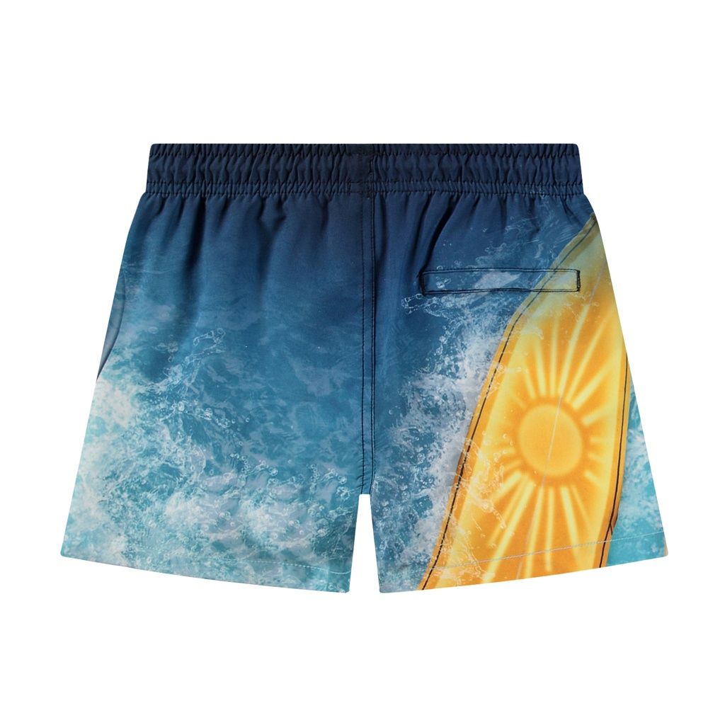 Sportliche Badeshorts für aktive Kinder aus recyceltem Polyester mit UV-Schutz 50+. Die Badeshorts haben eine lockere Passform, reichen bis zur Mitte des Oberschenkels, haben eine einfache Gesässtasche, einen elastischen Bund mit Kordelzug und weiche Mesh-Innenhosen.