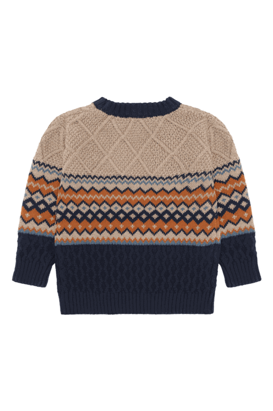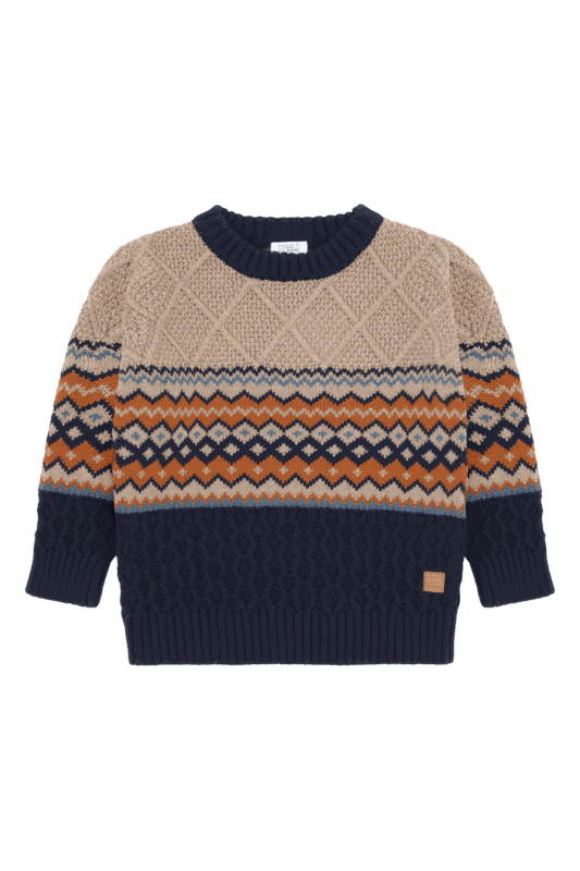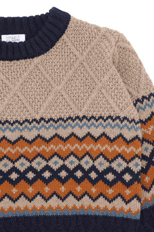 Der mehrfarbige, gestreifte Jungen-Pullover von Hust & Claire überzeugt durch seine hochwertige Verarbeitung und das zeitlose Design. Gefertigt aus 100 % Bio-Baumwolle, ist er besonders weich, atmungsaktiv und hautfreundlich - ideal für empfindliche Kinderhaut.