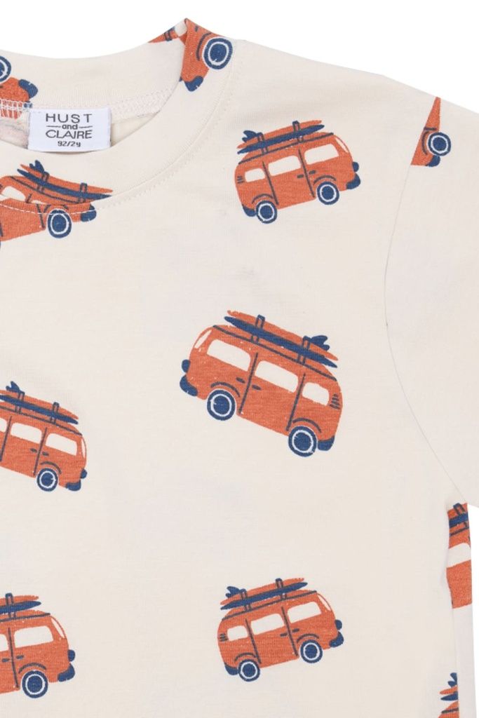 Bereit für kleine Sommerabenteuer: Das T-Shirt „HCAnton Van“ von Hust & Claire begeistert mit einem süssen Allover-Print aus kleinen Vans und bringt spielerische Leichtigkeit in jeden Look. Ein unkompliziertes Lieblingsstück für aktive Tage.
