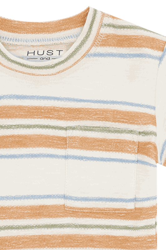 Dieses klassische Streifenshirt von Hust & Claire ist ein zeitloses Basic für jeden Tag. Das schlichte Streifenmuster verleiht dem kurzärmeligen T-Shirt eine klare, skandinavische Ausstrahlung und lässt sich vielseitig kombinieren - ob zur Jeans, Shorts oder unter einer leichten Jacke.
