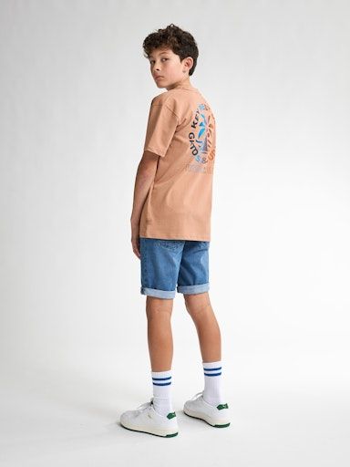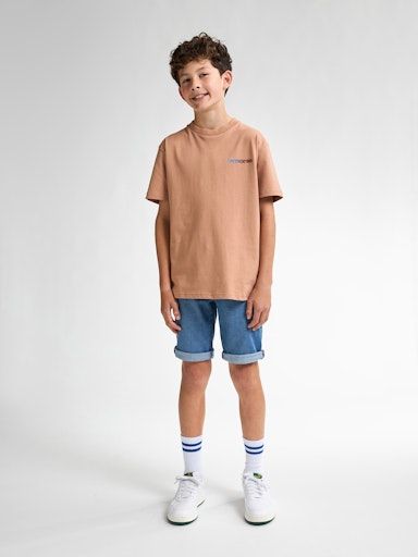 Dieses T-Shirt aus schwerem Jersey ist die perfekte Wahl für einen coolen, lässigen Look. Das T-Shirt hat eine lockere Passform mit Rundhalsausschnitt und kurzen Ärmeln, was es bequem und vielseitig macht.