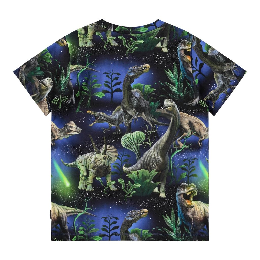 Dieses T-Shirt von Molo ist ein absolutes Must-have für kleine Dino-Fans. Hergestellt aus weicher, GOTS-zertifizierter Bio-Baumwolle, bietet es hohen Tragekomfort und eine angenehme Passform.