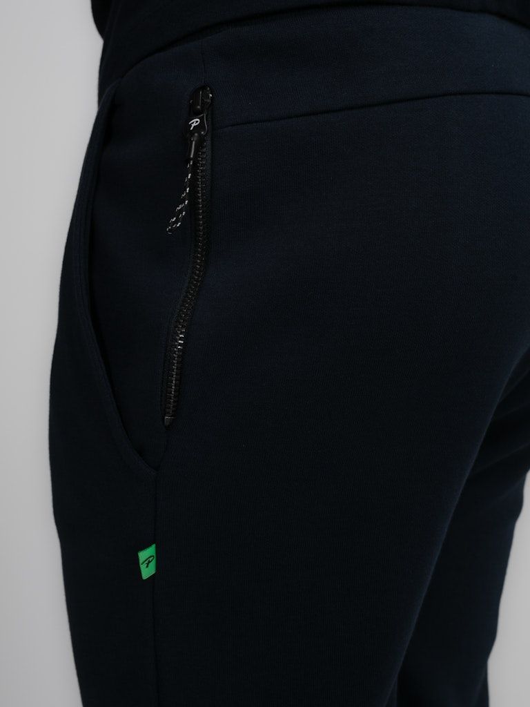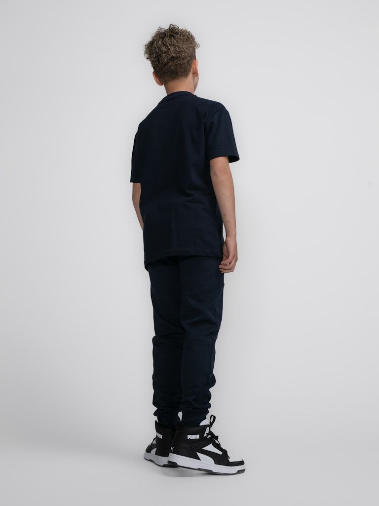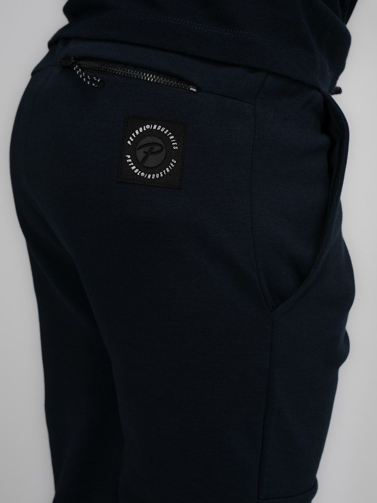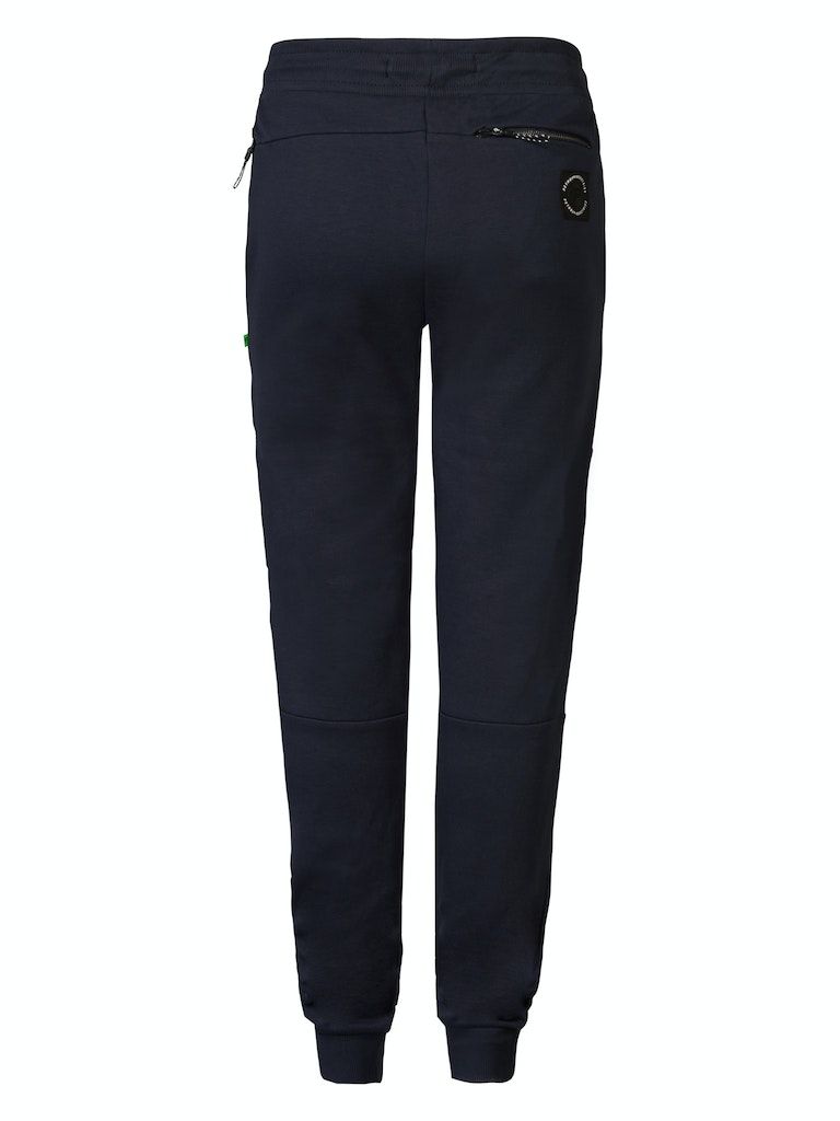Bequeme Jogginghose mit Tunnelzug und normaler Passform. Diese Hose hat zwei seitliche Eingrifftaschen und eine Gesässtasche.