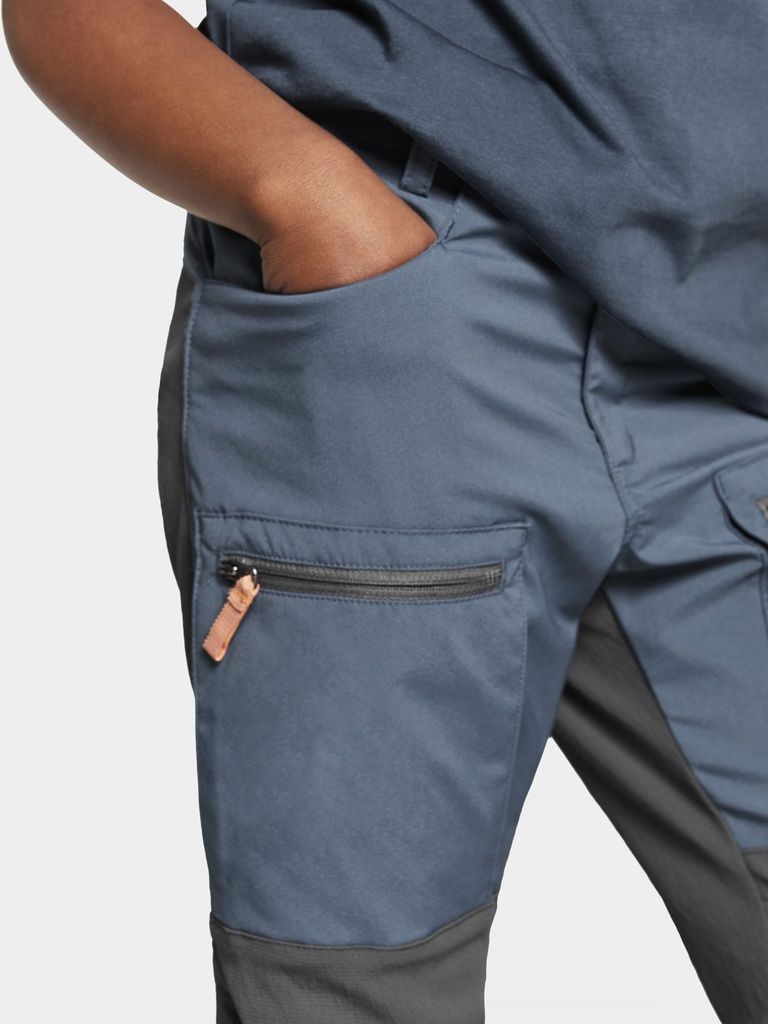Die wasserabweisende und winddichte Kotten-Hose sorgt dafür, dass sich die Kleinen beim Spielen im Freien wohl fühlen. Kotten sind aus dem 2-Wege-Stretch-Sorona®-Gewebe mit einer sehr weichen und glatten Rückseite hergestellt. Das biobasierte Sorona® Polymer besteht zu 37 % aus pflanzlichen Inhaltsstoffen (Öl aus Maisblüten). Das Sorona®-Polymer ist nach Klasse 1 des OEKO-TEX-Standards 100 zertifiziert. Die Hose hat Cordura®-Verstärkungen am Gesäss und an den vorgeformten Knien. Zwei Oberschenkeltaschen mit Reißverschlüssen und elastischer Verstellung in der Taille. PFC-freie wasserabweisende Ausrüstung.