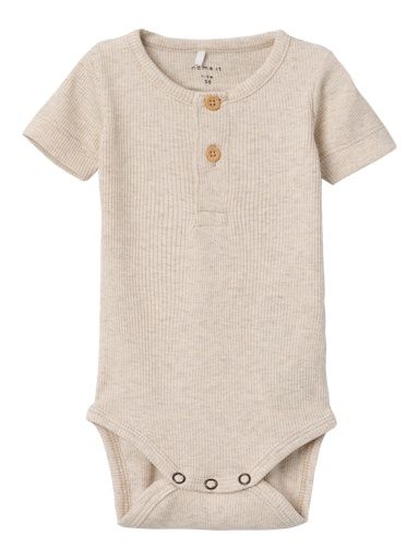 Dieser Body bietet sowohl Komfort als auch praktischen Nutzen, dank des Rundhalsausschnitts und des Druckknopfverschlusses, der für einfaches An- und Ausziehen sorgt. Die kurzen Ärmel und die Knopfdetails verleihen dem Design das gewisse Etwas.