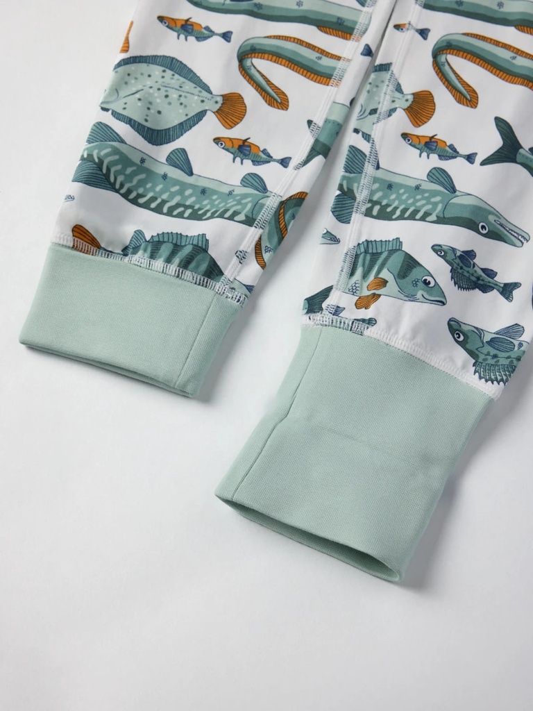 Dieser gemütliche Schlafanzug sorgt mit seinem weichen Jersey-Stoff und liebevollen Fisch-Print für eine angenehme Nachtruhe. Die besonders weichen Nähte verhindern Hautirritationen, während der dehnbare Bund und die extra langen Bündchen an den Beinabschlüssen für einen perfekten Sitz sorgen.