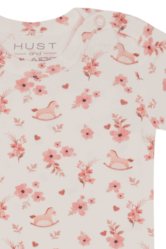 Dieser kurzärmelige Body aus weicher, dehnbarer Baumwolle bringt Frische und Komfort in den Alltag deines kleinen Lieblings. Der zauberhafte Blumendruck verleiht dem Body eine verspielte Note und macht ihn zu einem perfekten Kleidungsstück für warme Tage.