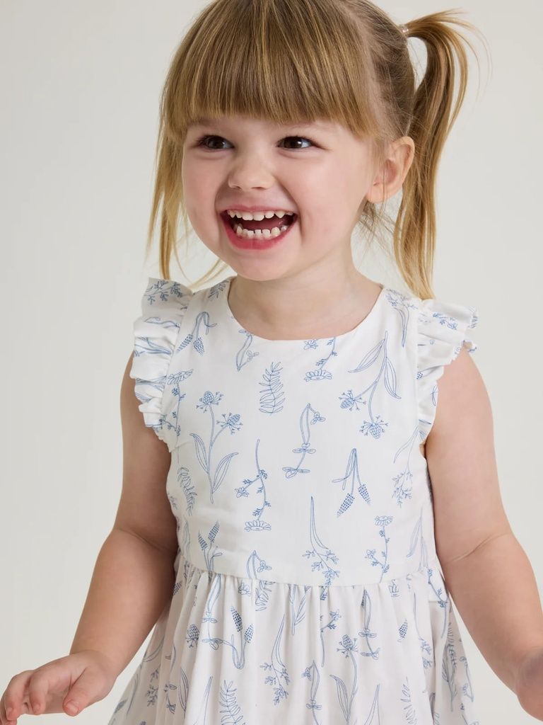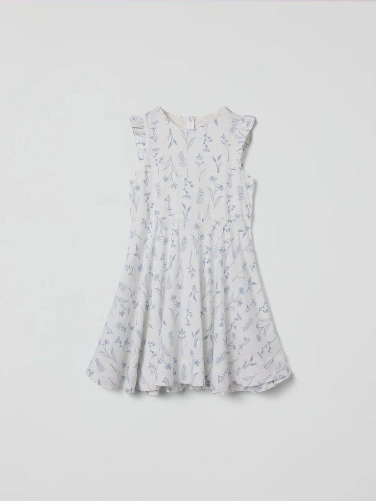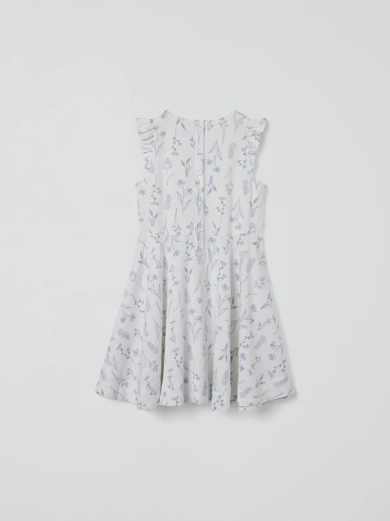 Der zarte Blumenprint verleiht dem Kleid eine besonders romantische Note, während die Knopfleiste im Rücken das An- und Ausziehen erleichtert.
