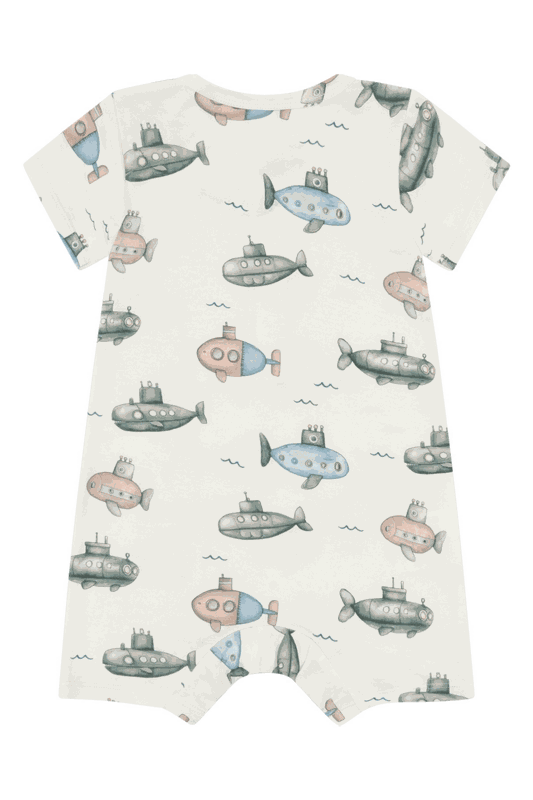 Der coole U-Boot-Print macht den Pyjama zu einem echten Hingucker, während praktische Details wie die aufgesetzte Tasche und Knöpfe vorne sowie zwischen den Beinen das An- und Ausziehen erleichtern. Oeko-Tex 100® zertifiziert, steht dieser Einteiler für geprüfte Sicherheit und nachhaltige Qualität, ideal für anspruchsvolle Eltern.