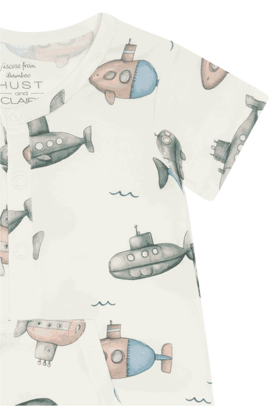 Der Baby-Pyjama Submarine HCMilu von HUST & CLAIRE vereint Komfort, Funktionalität und verspieltes Design. Hergestellt aus 95% Bambusviskose und 5% Elastan, bietet das dehnbare Material eine weiche, anschmiegsame Passform, die sich perfekt an die empfindliche Babyhaut anschmiegt.