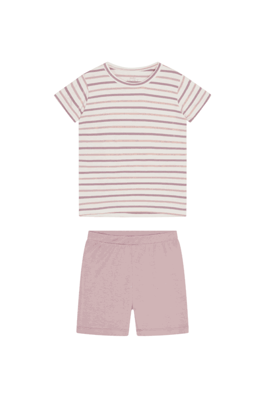 Dieses superweiche und dehnbare Pyjama-Set aus Bambus-Viskose sorgt für eine angenehme Nachtruhe. Das gestreifte T-Shirt und die bequemen Shorts mit elastischem Bund bieten höchsten Tragekomfort und Bewegungsfreiheit.