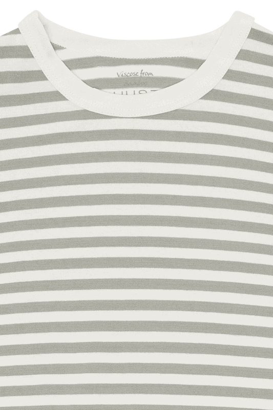 Das kurzärmelige, gestreifte T-Shirt mit Rundhalsausschnitt sitzt angenehm locker und fühlt sich wunderbar sanft auf der Haut an. Die einfarbigen Shorts mit elastischem Gummizug in der Taille sorgen für eine bequeme Passform ohne Einengen - perfekt für erholsamen Schlaf und entspannte Morgen.