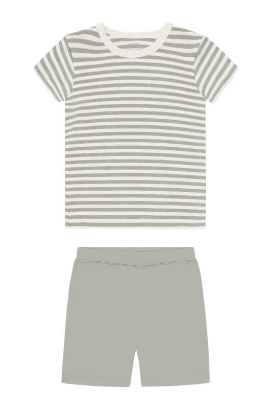 Der kurze, gestreifte Kinder-Pyjama von Hust & Claire vereint Leichtigkeit, Komfort und eine besonders weiche Qualität - ideal für warme Nächte und gemütliche Stunden zu Hause.