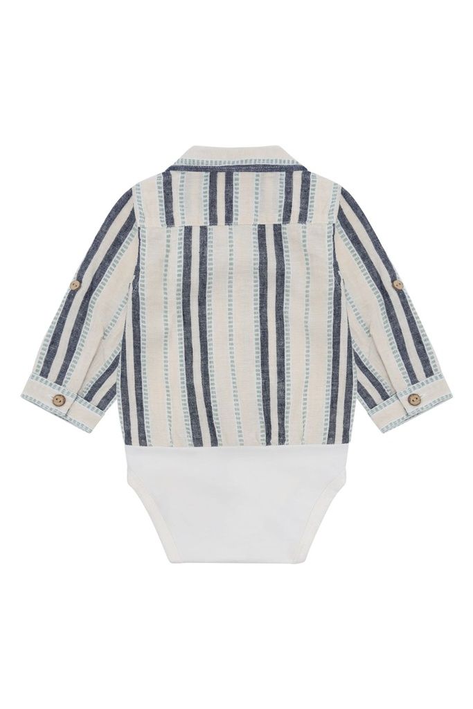 Das fein gestreifte Muster verleiht dem Hemdbody eine zeitlose, klassische Optik, während der Hemd-Look ihn zu einem echten Hingucker macht. Ideal für festliche Momente oder stilvolle Alltags-Outfits.