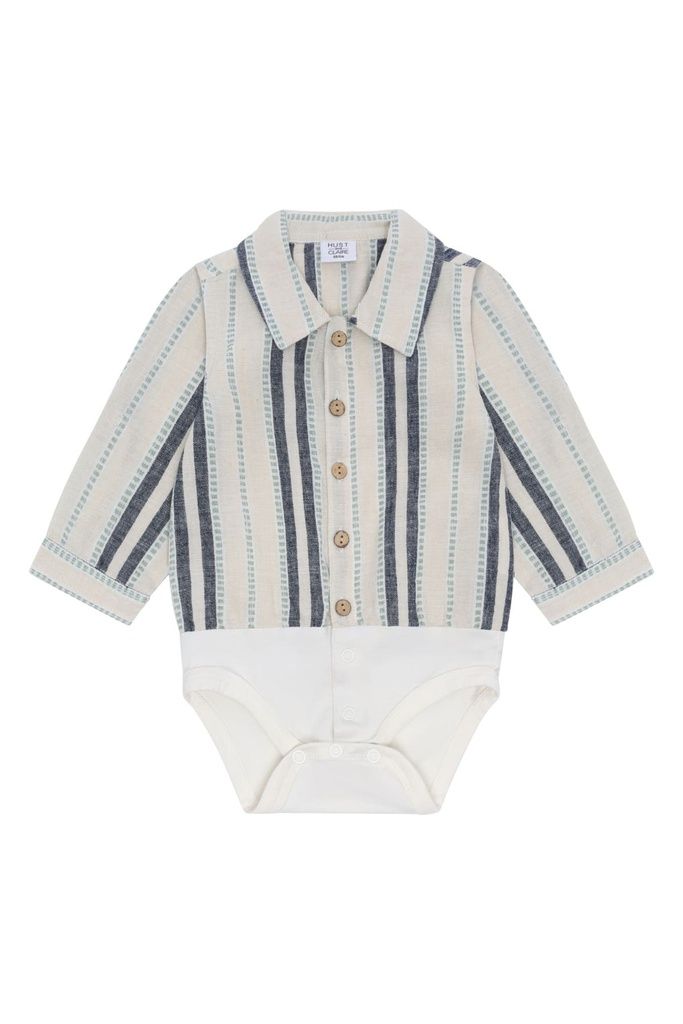 Ein stilvoller Begleiter für besondere Anlässe und kleine Alltagsabenteuer: Langarm Hemdbody „HCBertil Holiday“ von Hust & Claire vereint elegantes Design mit angenehmem Tragekomfort. Die Kombination aus weicher Baumwolle und leichtem Leinen sorgt für ein natürliches, luftiges Gefühl auf der Haut - perfekt für die Saison.