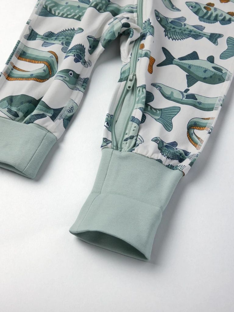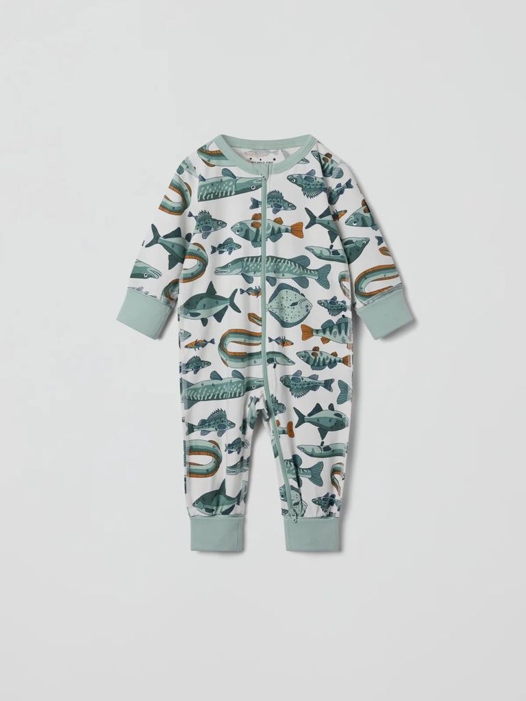 Dieser bezaubernde Schlafoverall mit süssem Fisch-Print sorgt für maximalen Komfort und sanfte Geborgenheit. Die besonders weichen, flachen Nähte schützen empfindliche Haut, während die extra langen Bündchen an Ärmeln und Beinen umgeschlagen werden können – so wächst der Overall ein Stück mit Ihrem Kind mit.