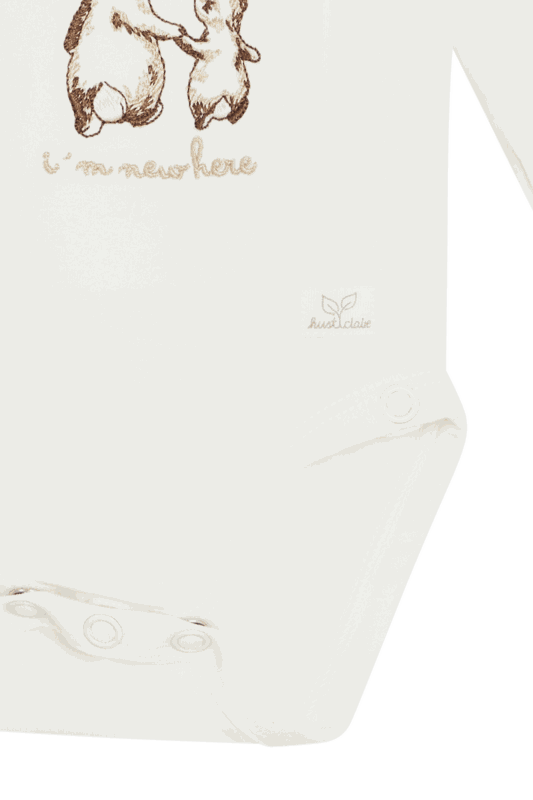Body aus weicher Baumwolle mit zwei aufgestickten Kaninchen auf der Vorderseite. Die Ärmel dieses Modells haben hinten eine zusätzliche Stoffschicht, die als Handschuh fungieren kann.