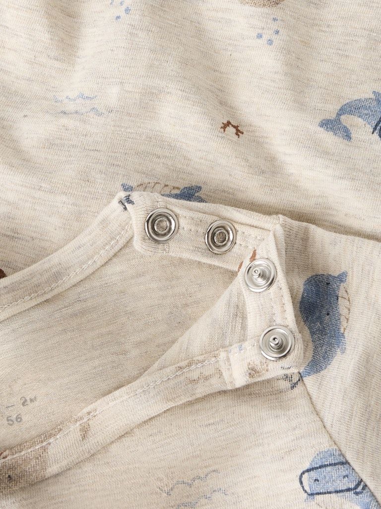 Dieser name it Baby-Body mit Allover-Print vereint Nachhaltigkeit, Komfort und süsse Designs - ein unverzichtbares Basic für jeden Babykleiderschrank.