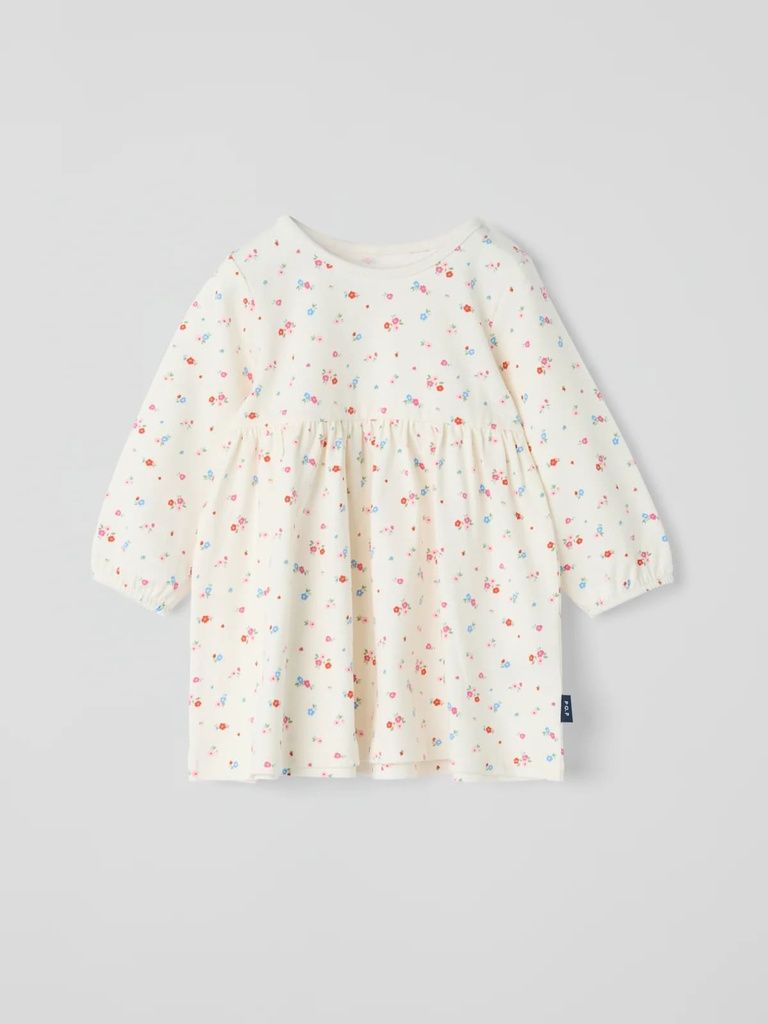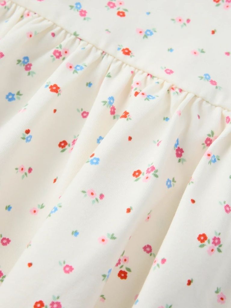 Festliche Alltagsmode: Dieses Kleid aus leichtem Bio-Baumwoll-Jersey vereint Komfort und Stil - ideal für Alltag und besondere Anlässe. Die hoch angesetzte Taille und der geraffte Rockteil sorgen für eine schöne, verspielte Silhouette.