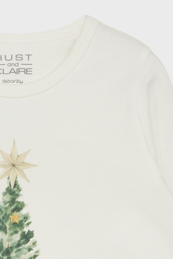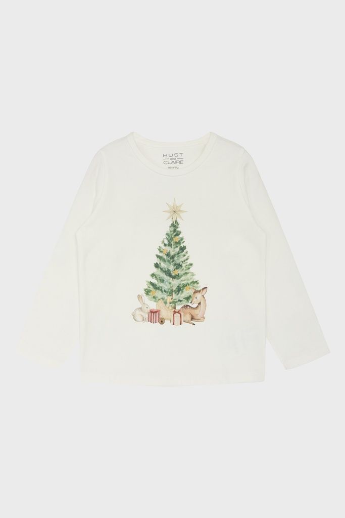 T-Shirt in weicher Baumwolle mit einem Weihnachtsbaum-Aufdruck und einem herzigen Reh.