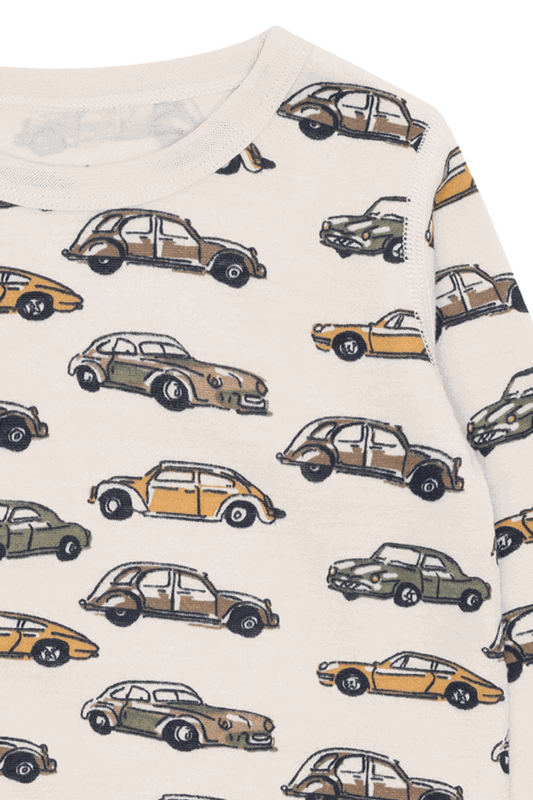 Ein komfortables, stylisches Kinder-Shirt, das kleinen Autoliebhabern Freude bereitet und nachhaltig produziert wurde.