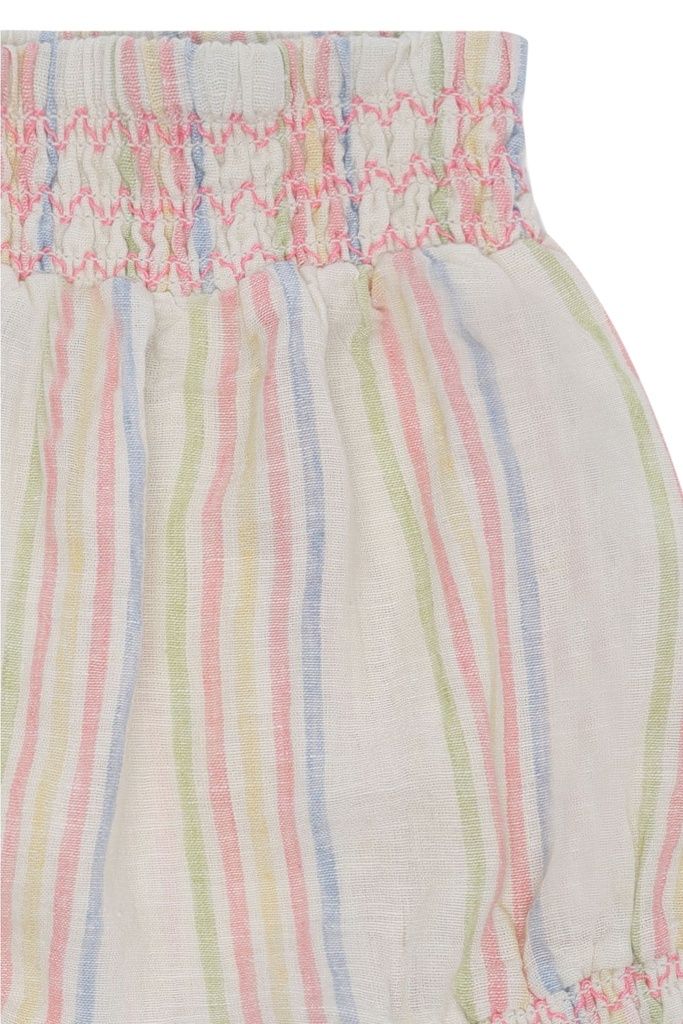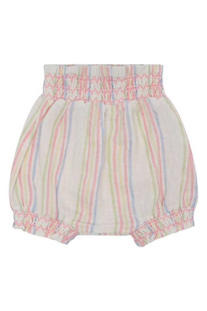 Der elastische Bund mit feinen Smokdetails sorgt für einen bequemen Sitz und eine schöne, feminine Silhouette. Die gerade Passform bietet viel Bewegungsfreiheit, während elastische Bündchen an den Beinenden zusätzlichen Komfort schaffen. Ganz ohne Verschluss lässt sich die Shorts unkompliziert an- und ausziehen - perfekt für den Alltag.
