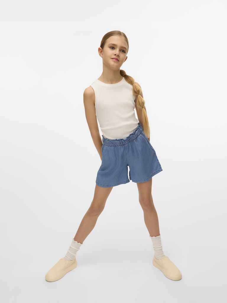 Mit diesen Shorts für Kinder kombinieren Sie Komfort, Stil und Vielseitigkeit. Der lockere Schnitt und das elastische Taillenbund sorgen für optimale Bewegungsfreiheit, während die hohe Taille für einen bequemen Sitz sorgt. Dank des weichen Materials mit mindestens 50 % TENCEL™ Lyocell fühlen sich die Shorts angenehm auf der Haut an - ideal für warme Tage oder in Kombination mit einer Strumpfhose an kühleren Tagen.